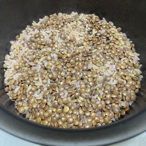 2. 6시간 후 백미 30g, 렌틸콩 60g도 씻어요.